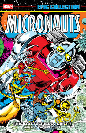 The original adventures of the Micronauts in the Marvel Universe continue! In this volume, they return to Earth only to find themselves in the X-Men’s Danger Room with the killer metamorph Huntarr in hot pursuit. Their adventures on our world will take them to unexpected places, including a comic book store and into battle against Doctor Doom. And when an exploit with the Wasp leaves half the team seemingly lost, the killer Computrex and rotting Professor Prometheus may just finish off the rest of our heroes. Meanwhile, back on Homeworld, the corrupt Prince Argon closes his grasp on power and with it the rebel Lady Slug. When the Micronauts are drawn back to Homeworld to battle Argon, a shocking revelation leaves them unprepared for the fight ahead.