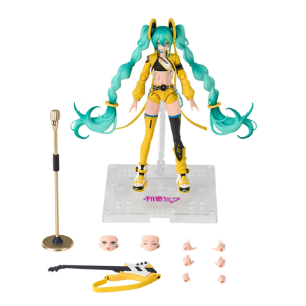 The flexible PVC body provides exceptional articulation through next-generation joints, including dual-ball waist mechanics and three-section articulated pigtails. Complete with bass guitar, microphone, multiple expression faces, and interchangeable hands for endless creative possibilities.