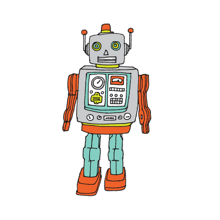 Check out this adorable little robot! What a perfect mechanical companion for nerds and nerdy kids alike. Each sheet comes with two Tattlys so you can share with a friend for matching robotic goodness.