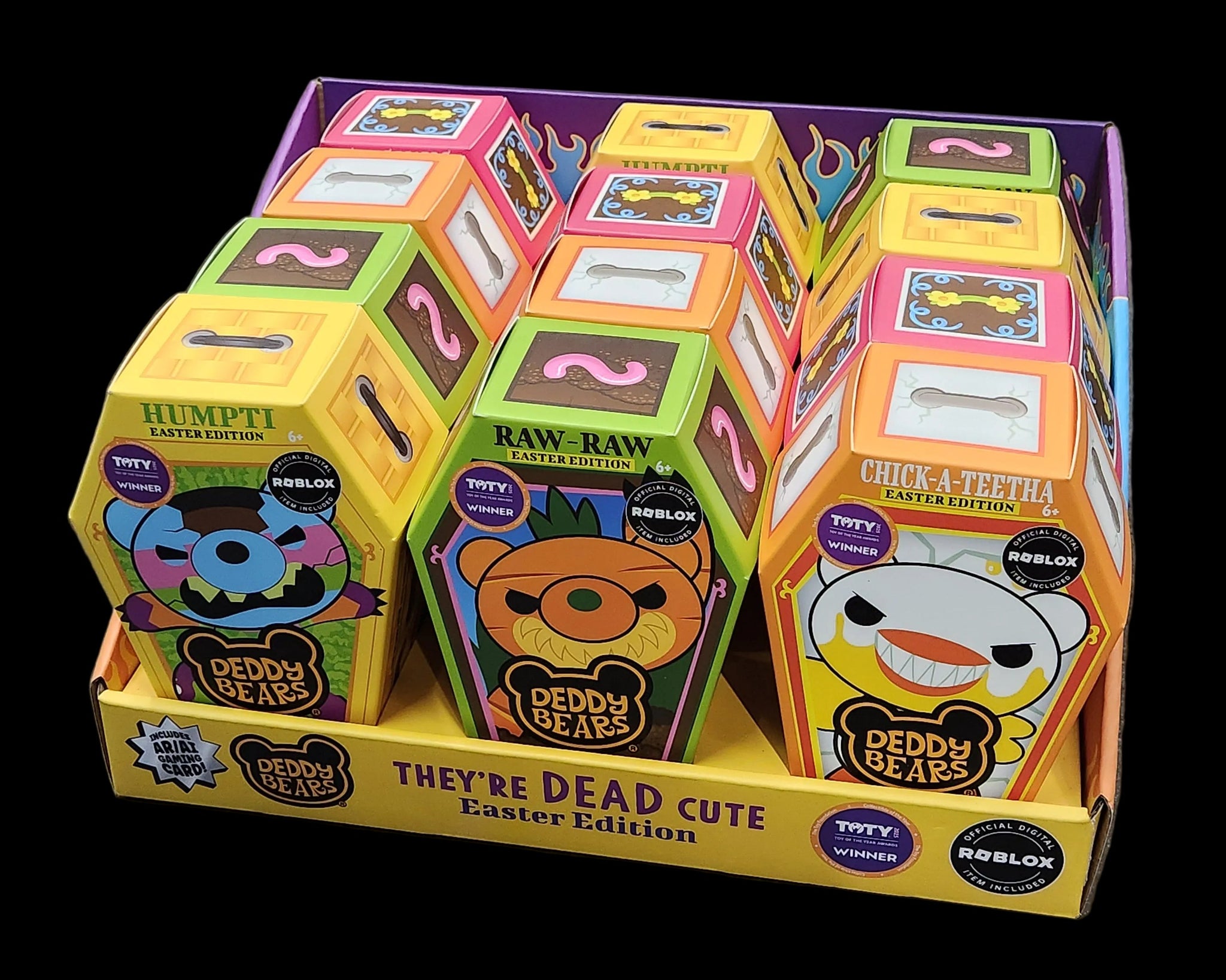 Deddy Bears are back for Easter with a bone-chilling twist. This 5-inch plush assortment features spooky-fun versions of your favorite undead bears, each tucked inside a custom coffin-shaped box for an extra dose of creepy charm. With bold colors, hauntingly playful designs, and irresistible shelf appeal, these collectible plush characters bring a whole new meaning to “cuddle with caution.”