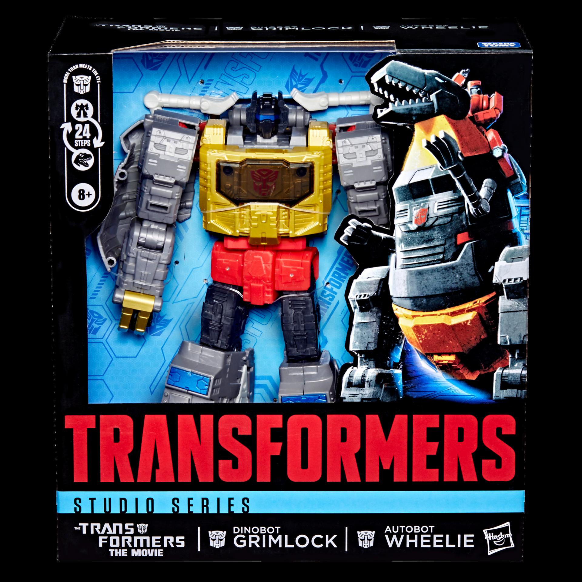 Experience the epic action of The Transformers: The Movie with the Transformers Studio Series Dinobot Grimlock toy! The 8.5-inch (21.5 cm) figure converts from robot action figure to dino mode in 24 steps. With movie-inspired details, intricate poseability, and a non-converting Autobot Wheelie mini action figure that can sit on Grimlock toy in both modes, this Dinobot Grimlock action figure makes an awesome addition to any collection. Look for more Transformers collectible toys (sold separately, subject to availability) featuring favorite characters like Optimus Prime, Bumblebee, Megatron, and more to create a lineup that is — More Than Meets the Eye.