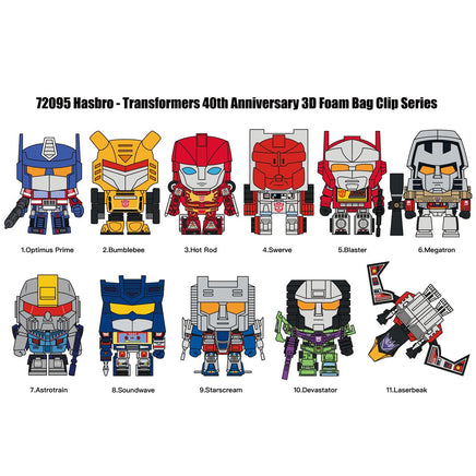 From Monogram Products. Transformers join your keychain collection for their 40th Anniversary with these bag clips from Monogram! These 3D foam clips come packaged in blind bags so collecting them is always a fun surprise.