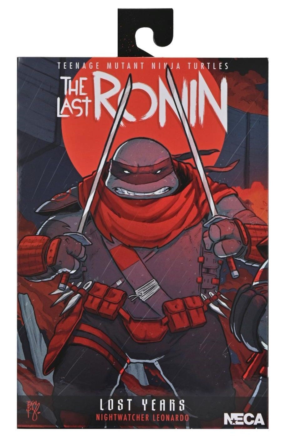From NECA. From the Teenage Mutant Ninja Turtles comic book series, The Last Ronin - The Lost Years! The tale of the Last Ronin's first mission continues as new secrets from the Turtles' past are revealed. After Raphael has fallen, the remaining Turtles regroup and form the Nightwatchers along with April and Casey. Based on issue #3, this Leonardo figure stands in 7-inch scale and features a stylized paint job for a comic-authentic look. Accessories include two heads, extra hands, and katanas! Comes in collector-friendly packaging with original illustrations by The Last Ronin artist Ben Bishop.